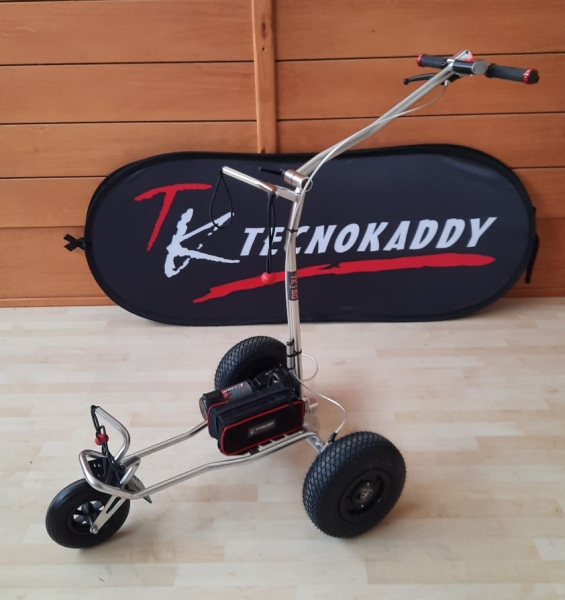 Il carrello viene fornito di serie con la nuovissima batteria al litio con bluetooth 29V (controllata dall'applicazione Tecnokaddy scaricabile dall'App store del proprio cellulare) completa di borsa e caricabatterie automatico con microprocessore.